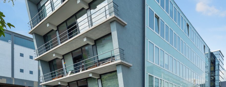 Jedes der drei Objekte wird über einen zentralen Eingang per Treppenhaus/ Fahrstuhl erschlossen, wodurch sich pro Etage zwei Mieteinheiten mit ca. 450 m² oder eine große Mieteinheit mit ca. 900 m² darstellen lassen.